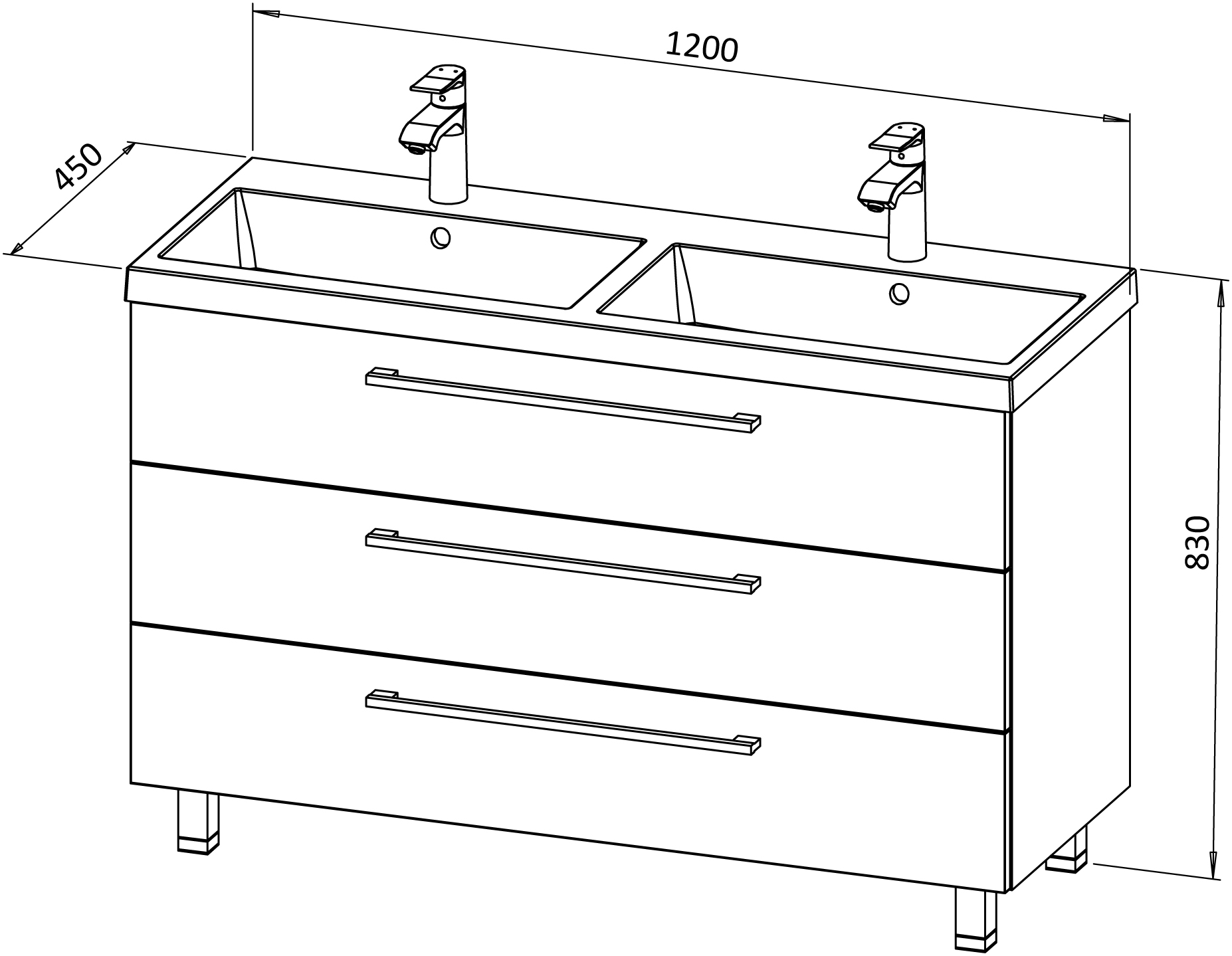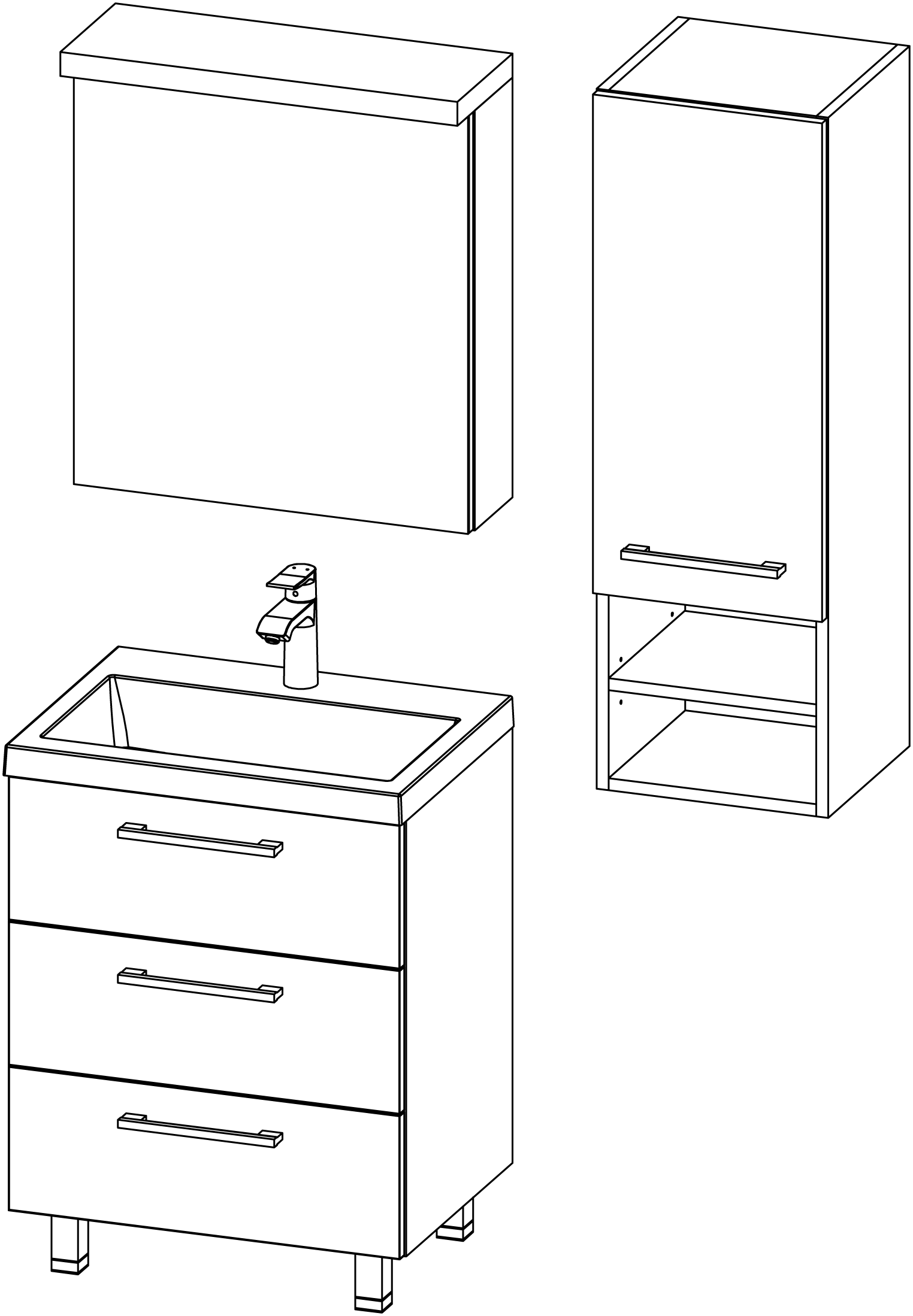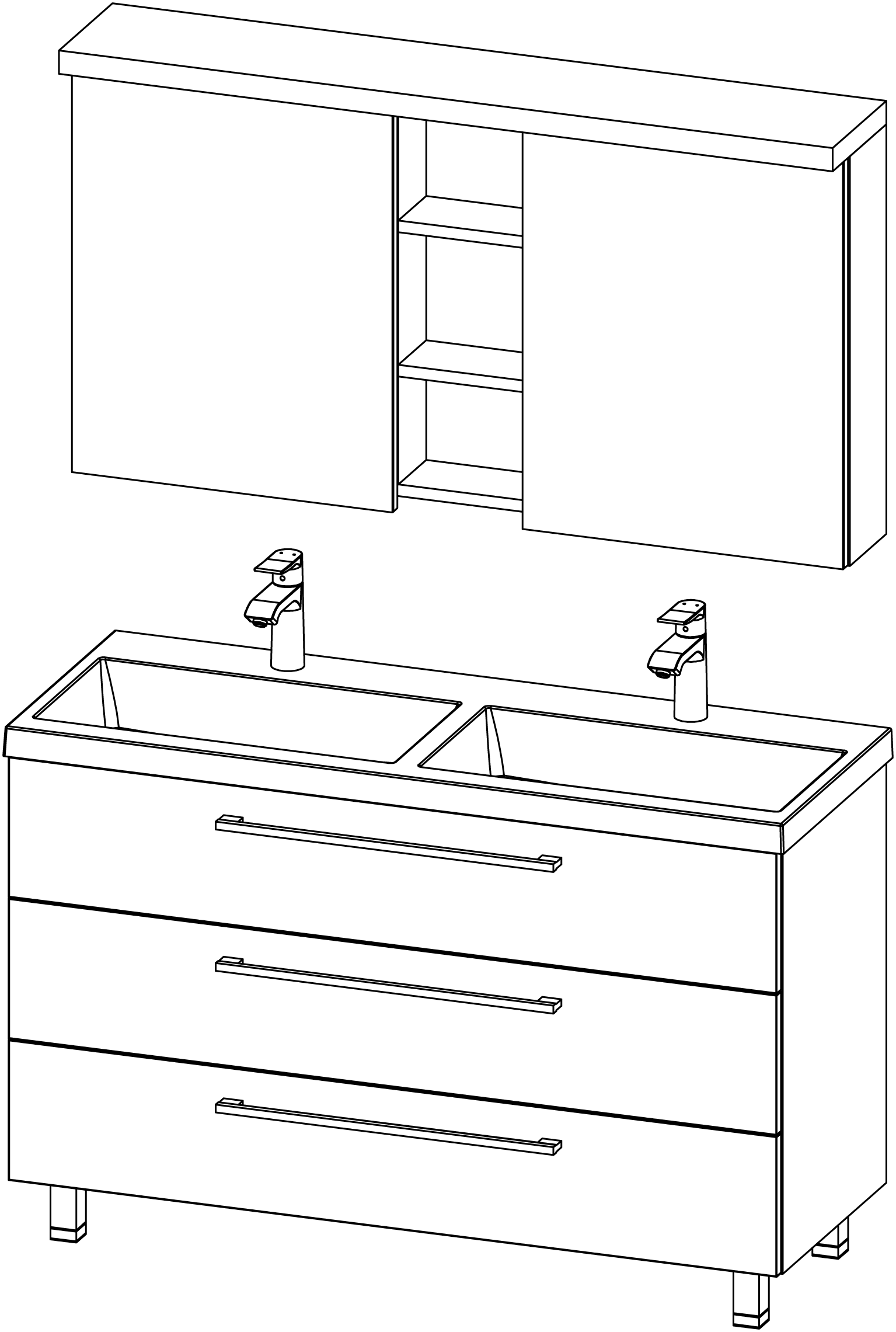 Das Produkt ist für den Einsatz in belüfteten Badezimmern bei Temperaturen von 17-24 °C und einer relativen Luftfeuchtigkeit von 45-70 % vorgesehen. Da das Material der Möbelteile feuchtigkeitsbeständig ist, dürfen die Holzteile nicht längerfristig in direkten Kontakt mit Wasser kommen.