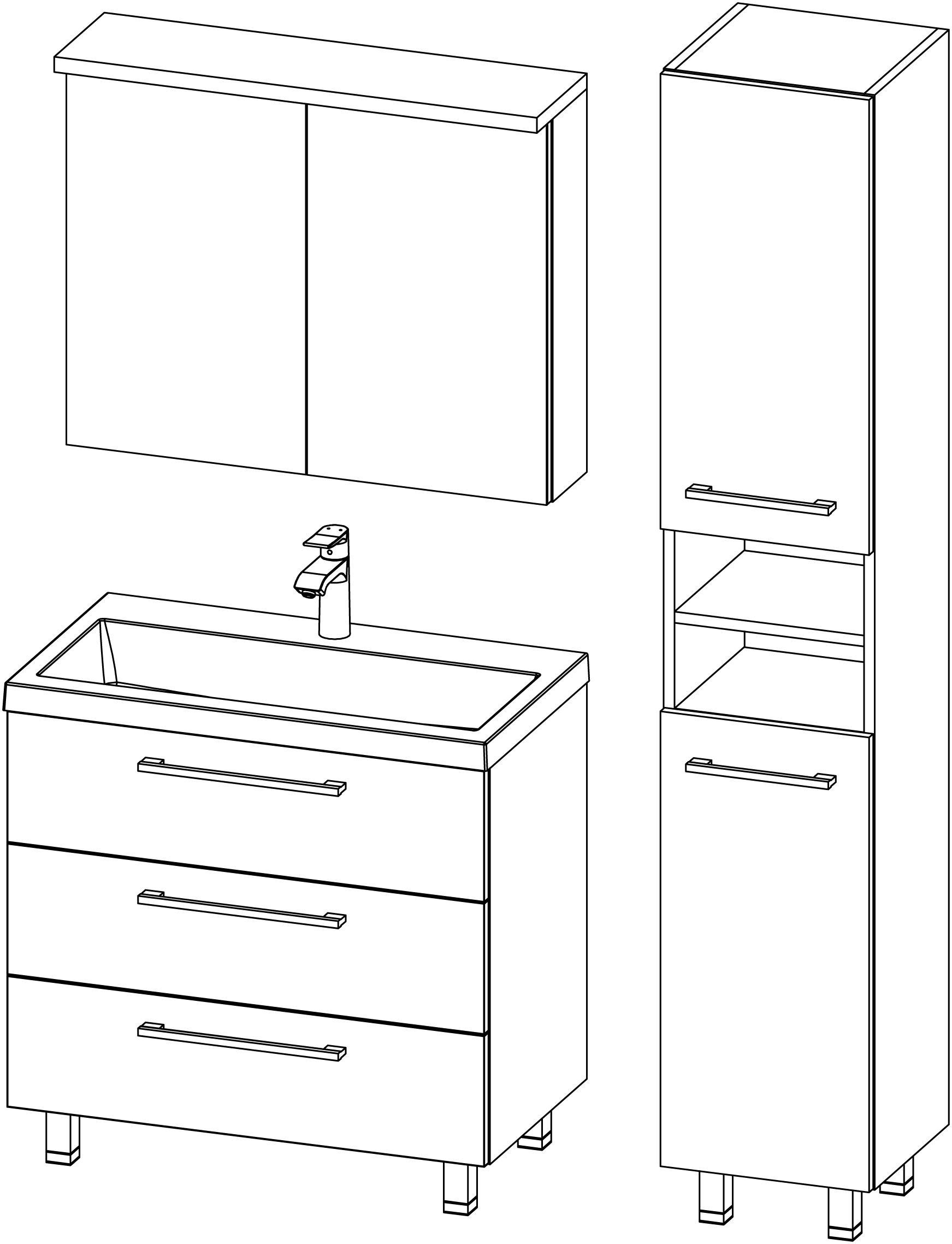 Das Astra ist ein modernes Badezimmermöbel mit Beinen, das Ihnen zusätzlichen Stauraum in Form einer Grundfläche mit drei Schubladen bietet. Diese Möbellinie besteht aus vielen Elementen, die miteinander kombiniert werden können, und die meisten Säulen Ihrer Wahl können immer mit einem nützlichen Schmutzwäschekorb ausgestattet werden. Die Spiegel verfügen über eine komfortable LED-Beleuchtung und viel Stauraum.