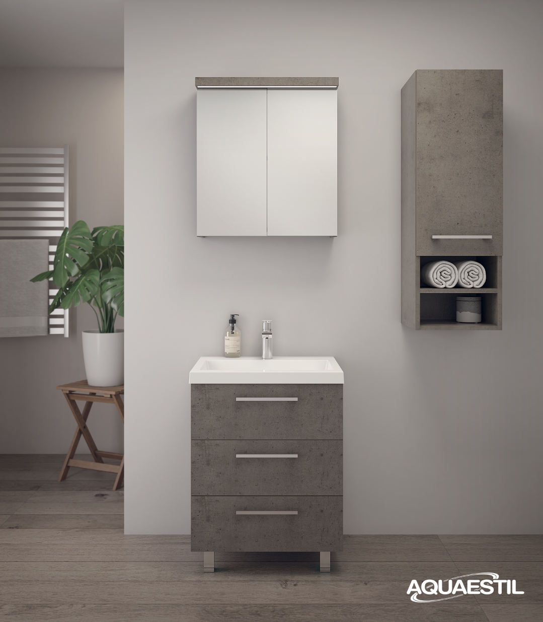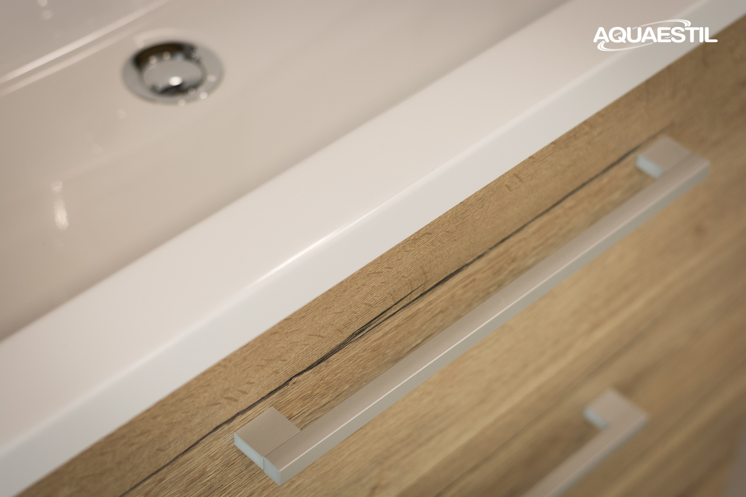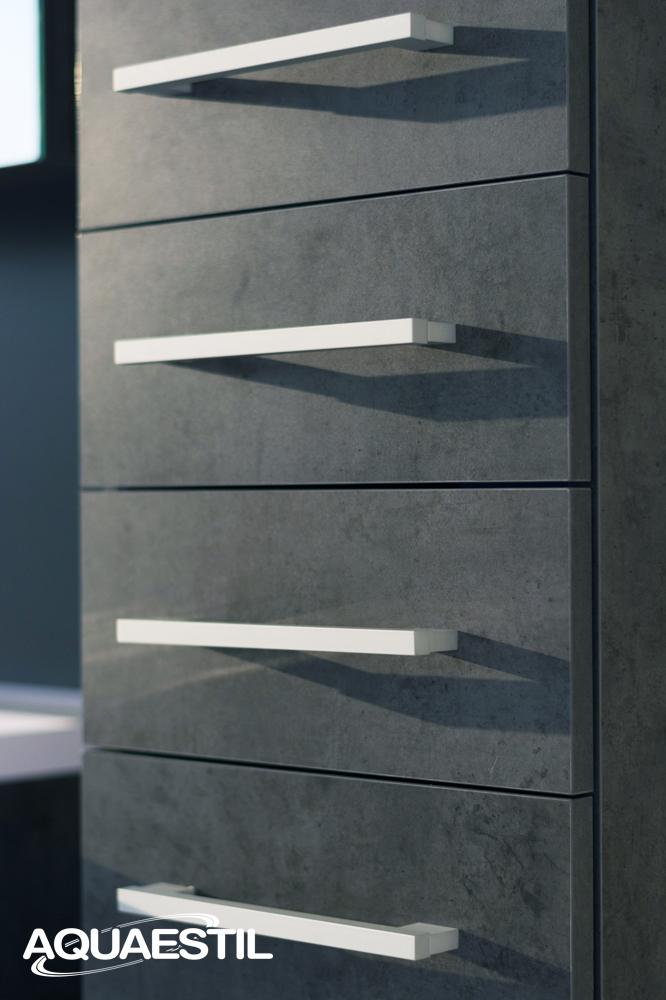 Die Waschbecken der Aquaestil Badezimmermöbel bestehen aus Mineralguss oder, in bestimmten Serien, aus Keramik. Für die Reinigung und Pflege der Aquaestil Waschbecken können Sie das Aquaestil Reinigungsmittel für Acryl- und Glasflächen oder ein standardmäßiges Badezimmer-Reinigungsmittel verwenden. Zur Entfernung von Kalk empfehlen wir Essig oder spezielle Mittel zur Kalkentfernung, die keine Mikrogranulate enthalten, die die Oberfläche des Waschbeckens zerkratzen könnten.