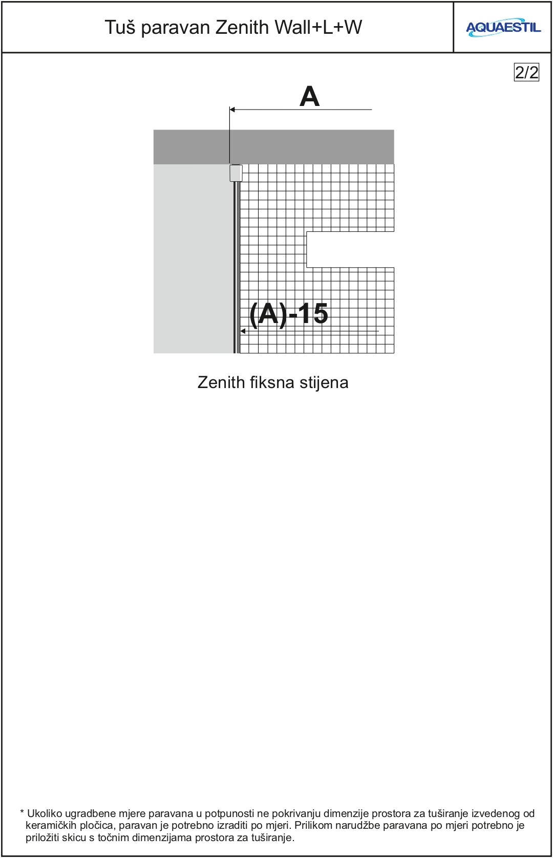 - Falls der Wandschirm auf Fliesen und nicht auf der Dusche aufgebaut wird, muss bei der Bestellung ein Entwurf mit den genauen Abmessungen.