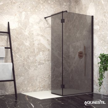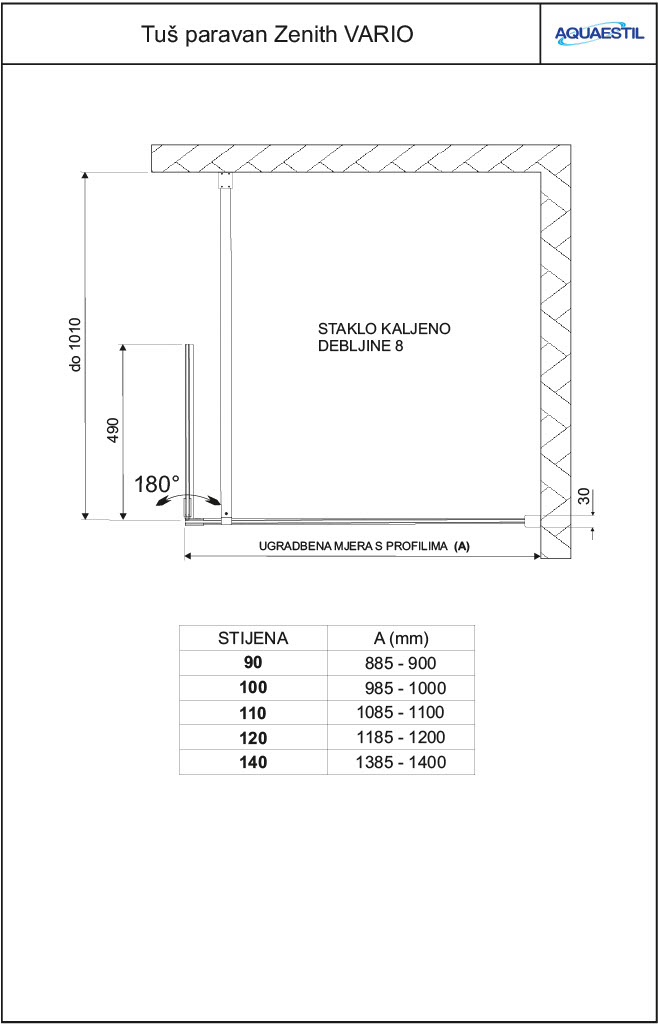 Eine Duschwand, der aus einer festen Glaswand und einem um 180° drehbaren Drehteil mit drei Stopppunkten. Zenith Vario bietet im Vergleich zu einer klassischen festen Glaswand einen besseren Spritzschutz außerhalb des Duschbereichs und ist eine ideale Ergänzung für auch kleinere „walk-in“ Duschbereiche.