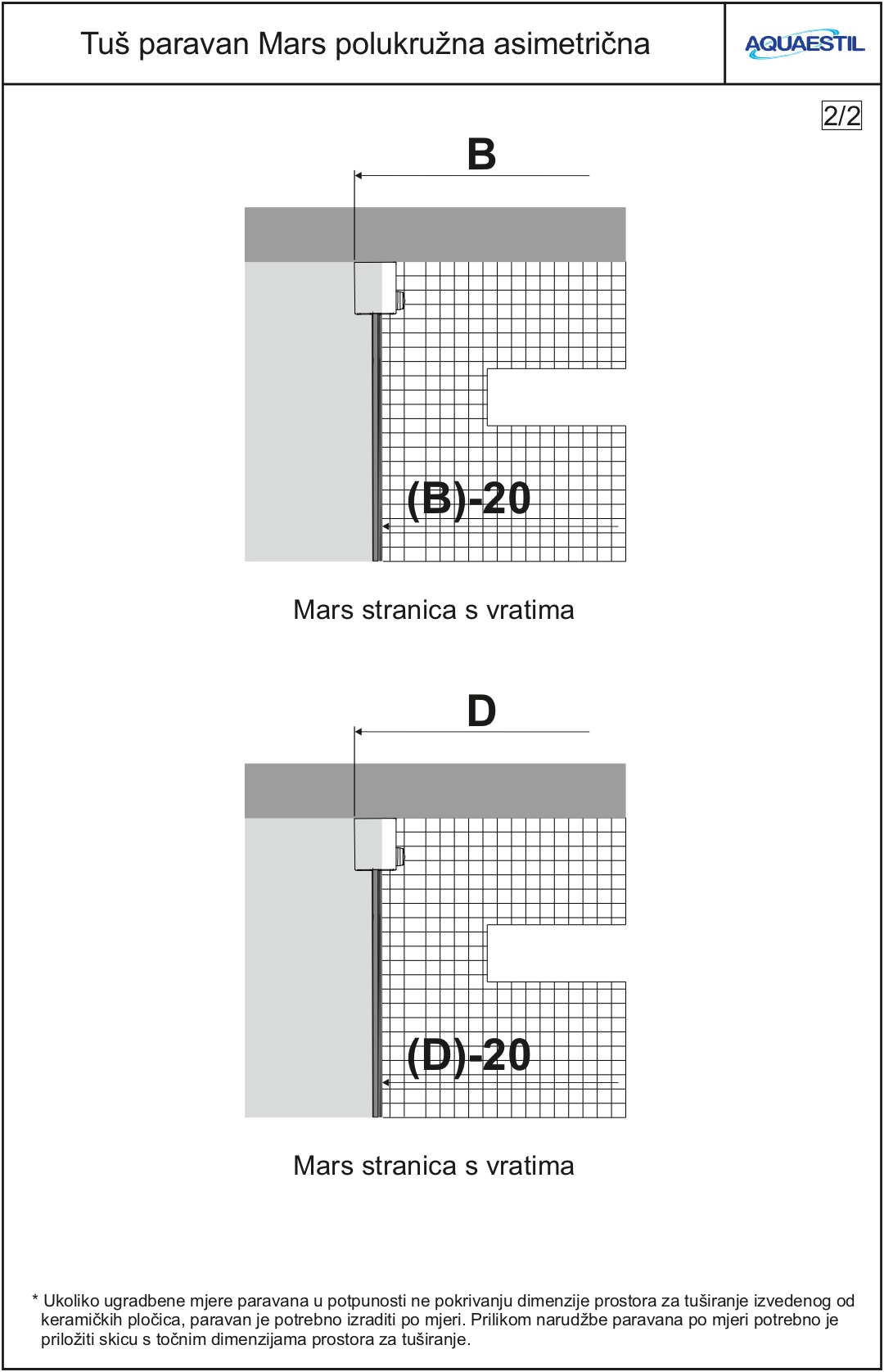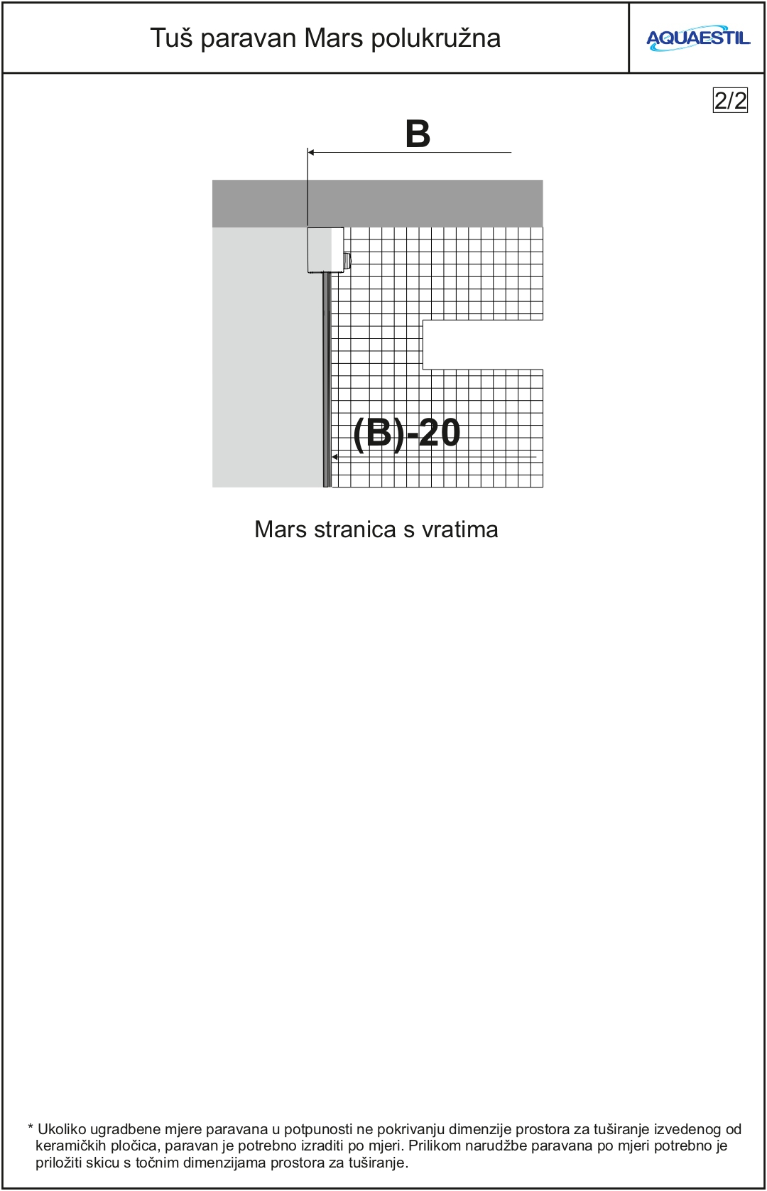 - Custom-tailored dimensions are not available for semicircular shower screens.
