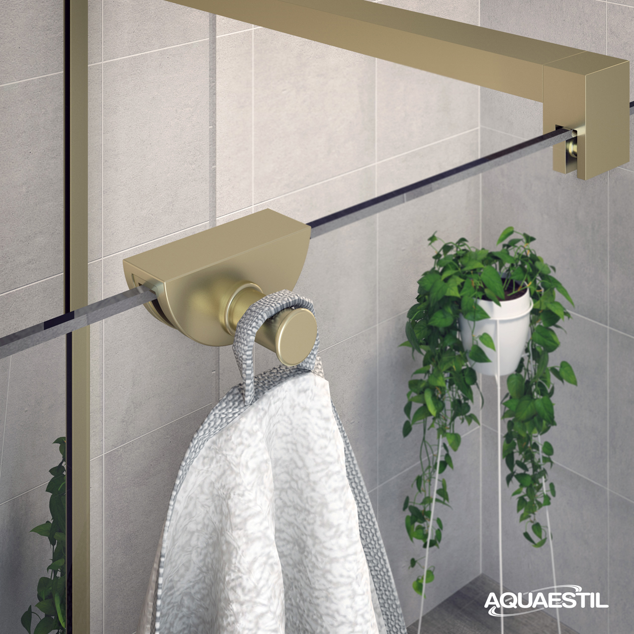 Vješalica za ručnike za naknadnu montažu na staklo praktičan je i estetski prihvatljiv dodatak paravanima bez profila na gornjoj strani. Vješalica se montira na već postavljeni paravan u samo nekoliko sekundi te je kompatibilna sa 6 ili 8 mm staklom. Ovaj proizvod dostupan je u srebrnoj, crnoj mat, bijeloj mat ili zlatnoj boji te se može naručiti kod svih Aquaestil maloprodajnih zastupnika.