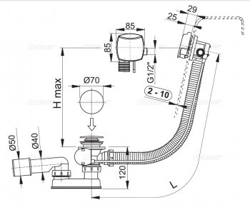 Komplet preljevno-otočne garniture s mogućnošću samopunjenja kombinira funkciju izljeva s preljevom i odvodnim sustavom kupaonske kade. Element garniture smješten u unutrašnjosti kade spaja funkciju preljeva i izljeva, eliminirajući potrebu za tradicionalnom izljevnom armaturom iznad, ili na prirubnici kade.