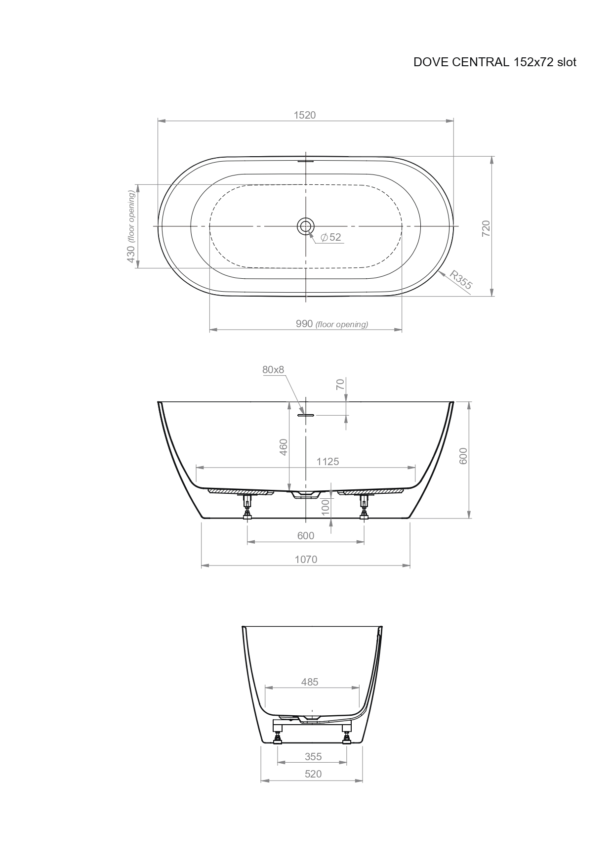 Kupaonske kade Dove izrađene su od kvalitetnog lijevanog sanitarnog akrila koji je ugodan na dodir, otporan, prirodno protuklizan te jednostavan za održavanje. Dove dolazi s tvornički ugrađenim postoljem i preljevno-otočnom garniturom sa „slot“ preljevom i „klik-klak“ ventilom sifona. Svi elementi tvornički su sastavljeni te se kada isporučuje spremna za ugradnju u Vašu kupaonicu.