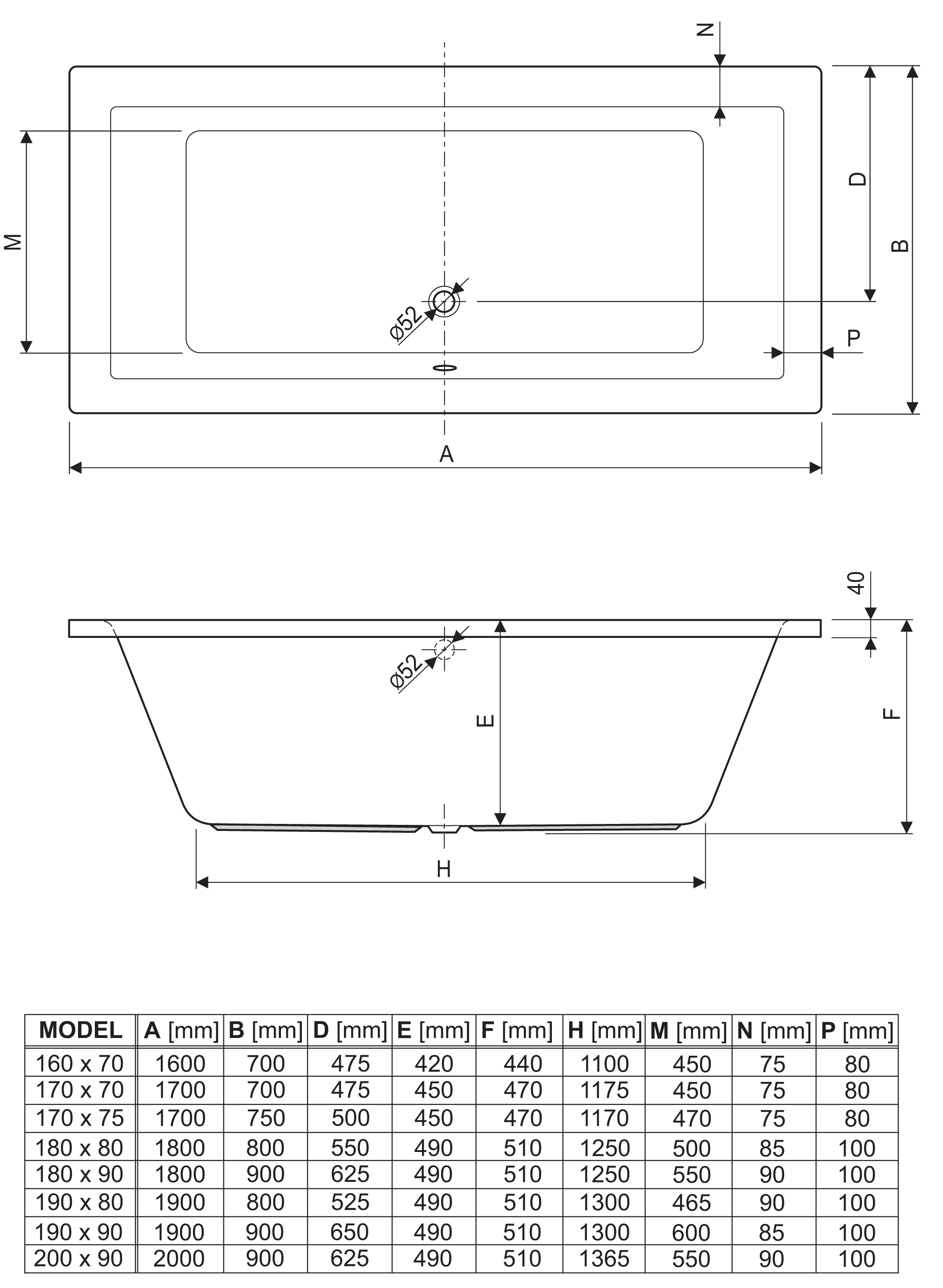 • 160 x 70 cm Vol: 200 ltr