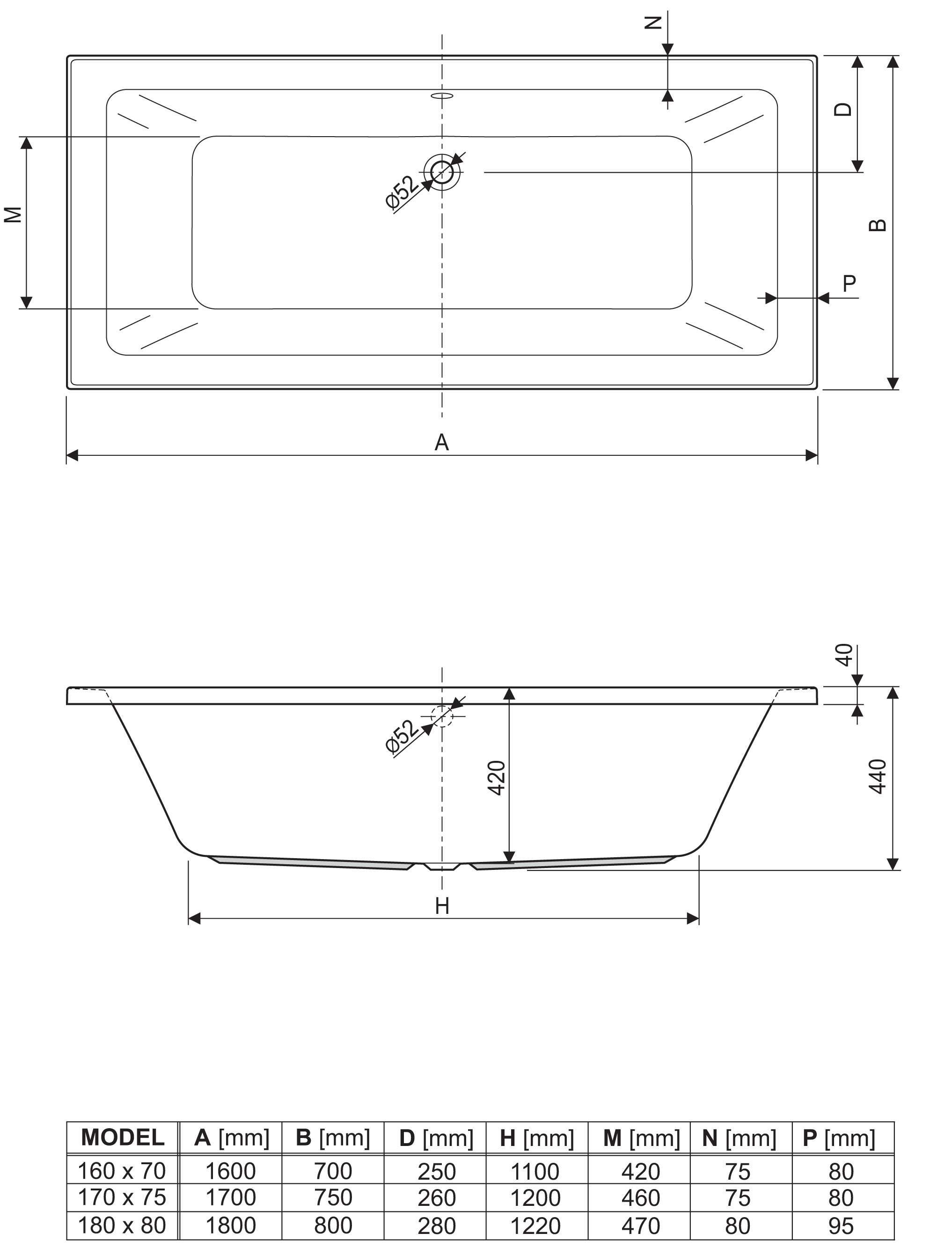Lugano je elegantna pravokutna kada sa centralnom pozicijom sifona. Karakteristična je po dubini od samo 42 cm, čime se doprinosi uštedi vode u domaćinstvu.