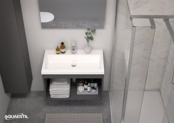 Aquaestil umivaonici izrađeni su od lijevanog mramora. Lijevani ili mineral mramor napredni je materijal koji se sastoji od prirodnih mineralnih i kamenih čestica, poliestera i smole. Ovaj materijal lijevan je u posebno izrađenim kalupima, a svaki umivaonik prolazi detaljnu završnu obradu i tretman Gelcoat materijalom koji površinu čini besprijekorno sjajnom i otpornom na ogrebotine.