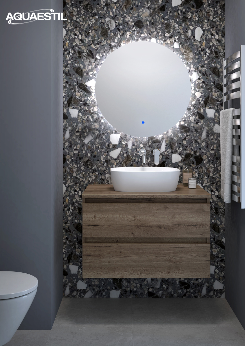 - Boje prezentirane na web stranici mogu u manjoj mjeri odstupati u odnosu na stvarne boje kupaonskog namještaja. Uzorci boja namještaja mogu se vidjeti uživo kod ovlaštenih Aquaestil maloprodajnih partnera ili u našem izložbenom salonu.