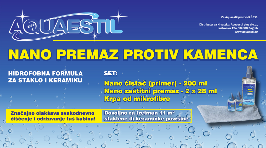 Stakla svih paravana Aquaestil tvornički su tretirana nanosom protiv kamenca koji površinu dodatno štiti od nakupljanja kamenca i prljavštine te olakšava svakodnevno čišćenje i održavanje prostora za tuširanje. Tehnologija uključuje nanošenje nanočestica s komponentama koje se čvrsto vežu na staklenu površinu i odbijaju druge tvari poput vode, različitih ulja, prljavštine, insekata i ostatka kamenca. Nakon tretmana, staklo je postojano na trenje, a svoje djelovanje nanočestice na površini zadržavaju dulje vrijeme bez potrebe za ponovnim tretmanom.