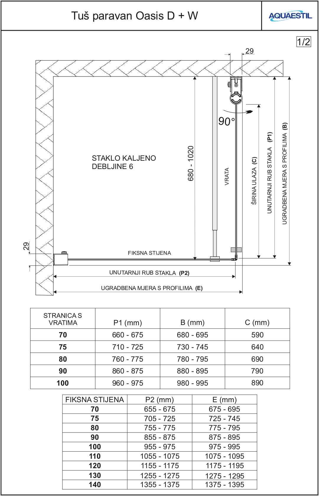 - Ukoliko se paravan postavlja na pločice, a ne na tuš kadu, uz narudžbu je potrebno dostaviti nacrt sa točnim dimenzijama prostora za tuširanje.