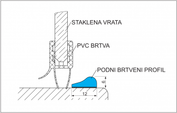 Ovaj dodatak lijepi se na rub tuš kade ili poda od keramičkih pločica predviđenog kao prostor za tuširanje i osigurava bolje brtvljenje paravana s okretnim i preklopnim vratima. Postavlja se na način da podna brtva na vratima u zatvorenom položaju nasjeda na podni aluminijski brtveni profil. Isporučuje se u dužini od 100 cm i po potrebi se skraćuje na širinu vrata. Dostupan u bojama profila tuš paravana.