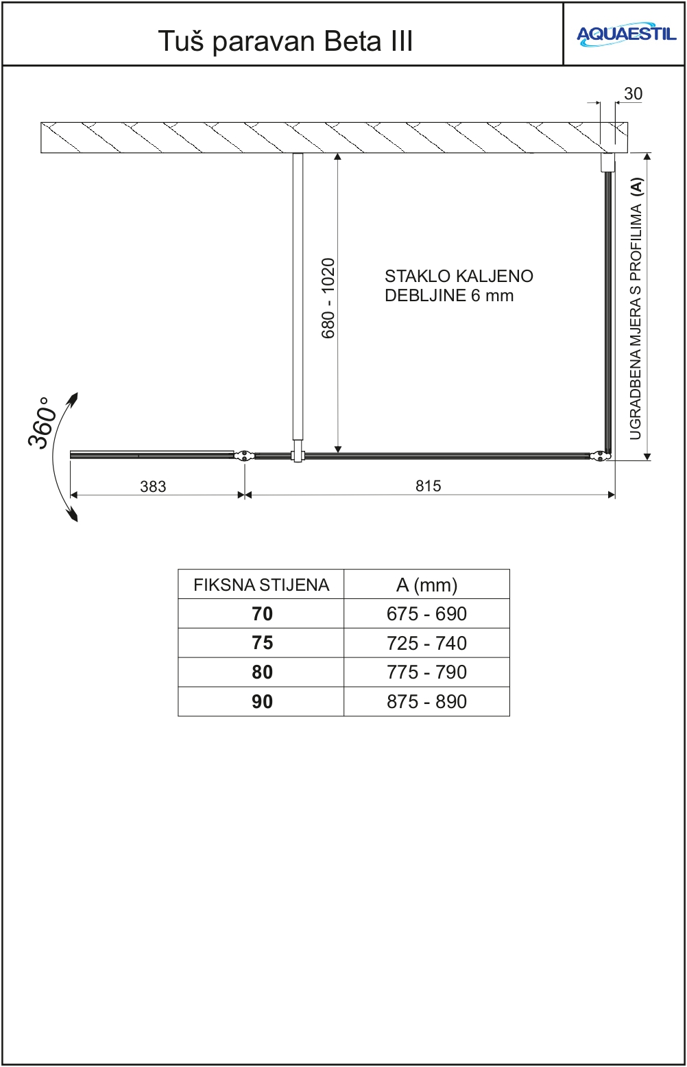 Vješalica se montira na već postavljeni paravan u samo nekoliko sekundi te je kompatibilna sa 6 ili 8 mm staklom.
