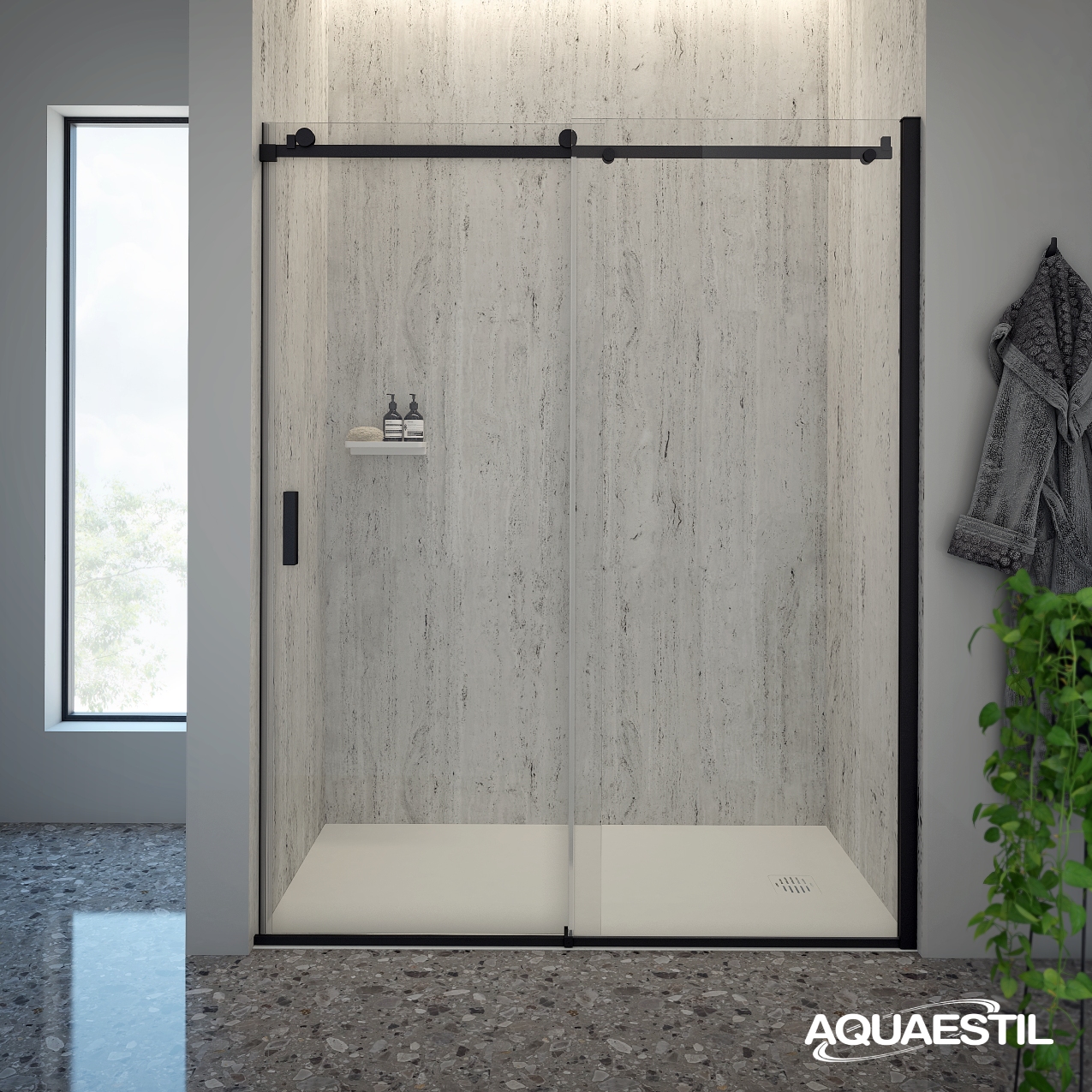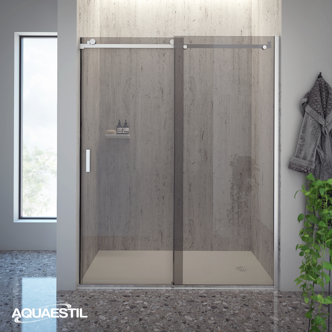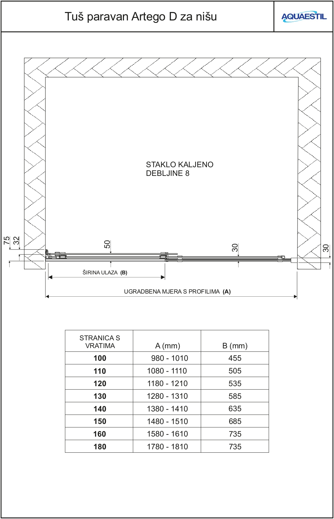 Animacija prikazuje način otvaranja vrata ili pokretnog dijela na Aquaestil tuš kabinama i paravanima radi boljeg razumijevanja funkcionalnosti proizvoda. Animacija ne prikazuje detaljne tehničke karakteristike proizvoda.