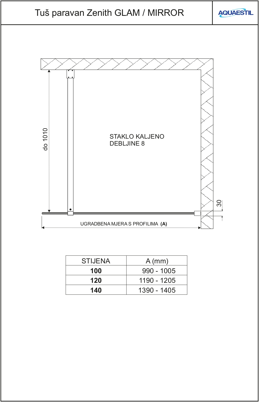 - Paravan Zenith Mirror dostupan je i u varijanti s kutnim fiksatorom u rasponu dimenzija od 90 do 120 cm širine*