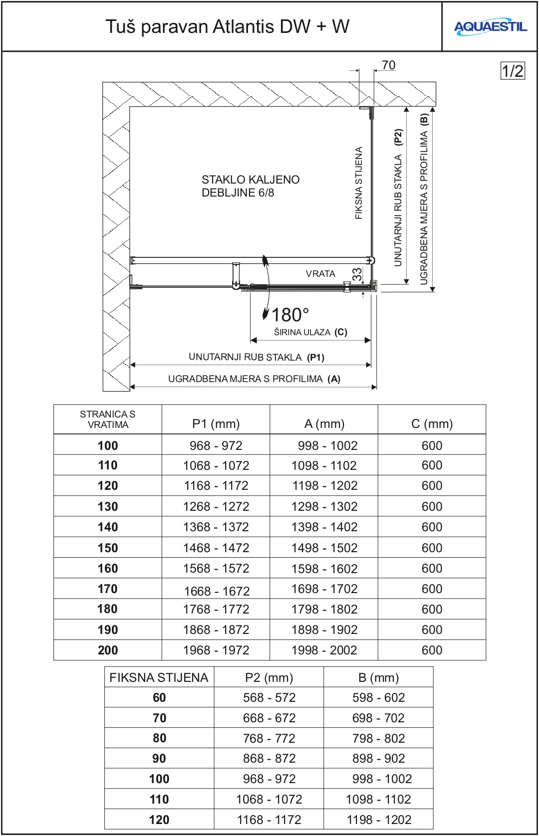 Atlantis DW+W je luksuzni paravan koji se sastoji od fiksne stijene u čijem produžetku su pantima prčvršćena vrata te jedne fiksne stranice. Stakla su pričvršćena elegantnim pantima, a vrata se mogu otvarati prema unutra i prema van zahvaljujući mimohodnoj brtvi. Lift sistem vrata omogućuje glatko otvaranje. Zbog vrlo male ugradbene tolerancije, ovaj model paravana naručuje se po mjeri uz priloženi nacrt.
