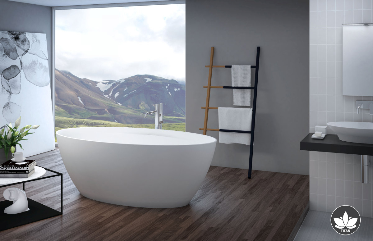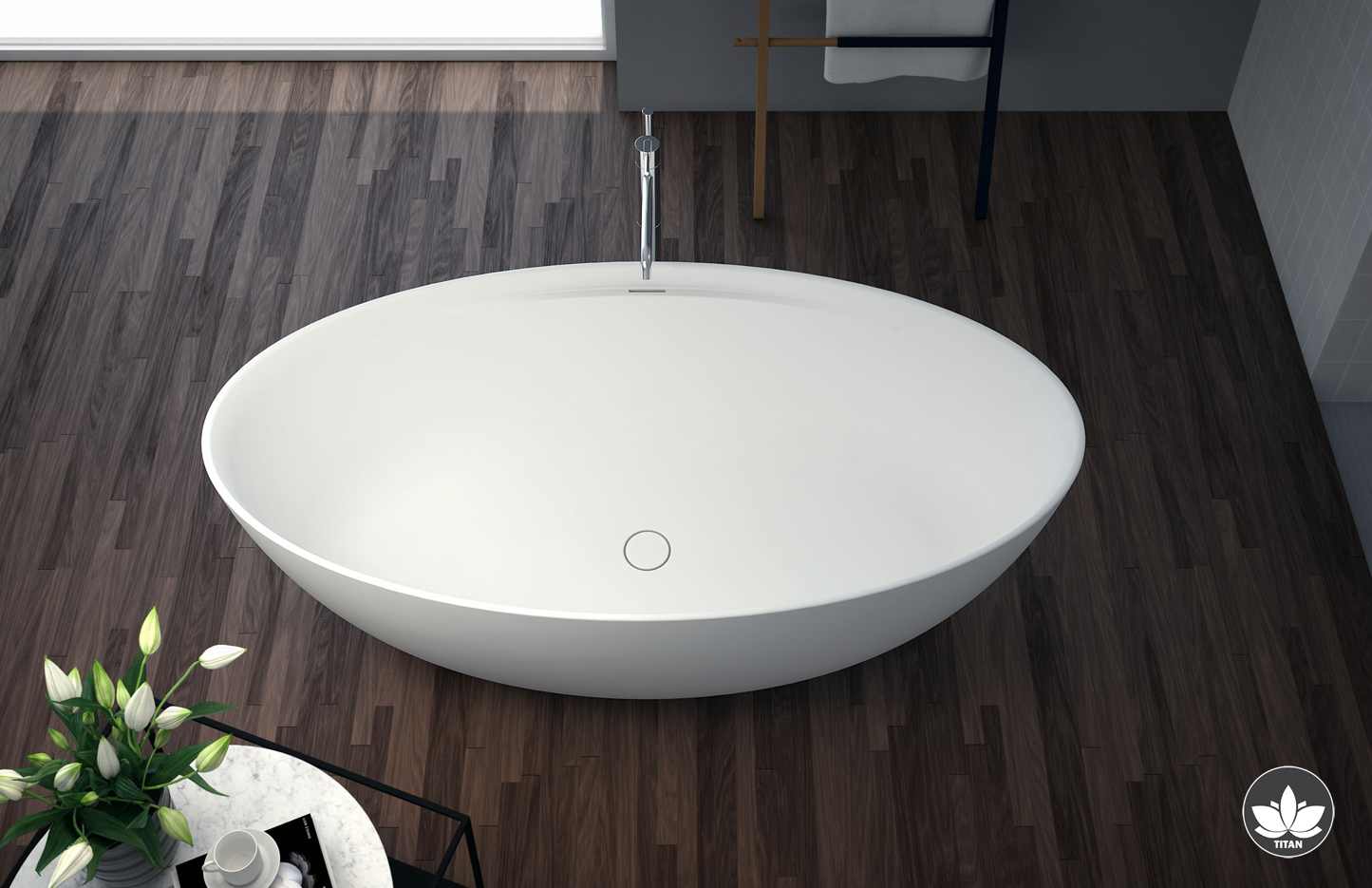 Kompaktna, a iznimno prostrana samostojeća kada Titan oval naglašava dopadljive linije dobivene pažljivom obradom materijala ASTONE.