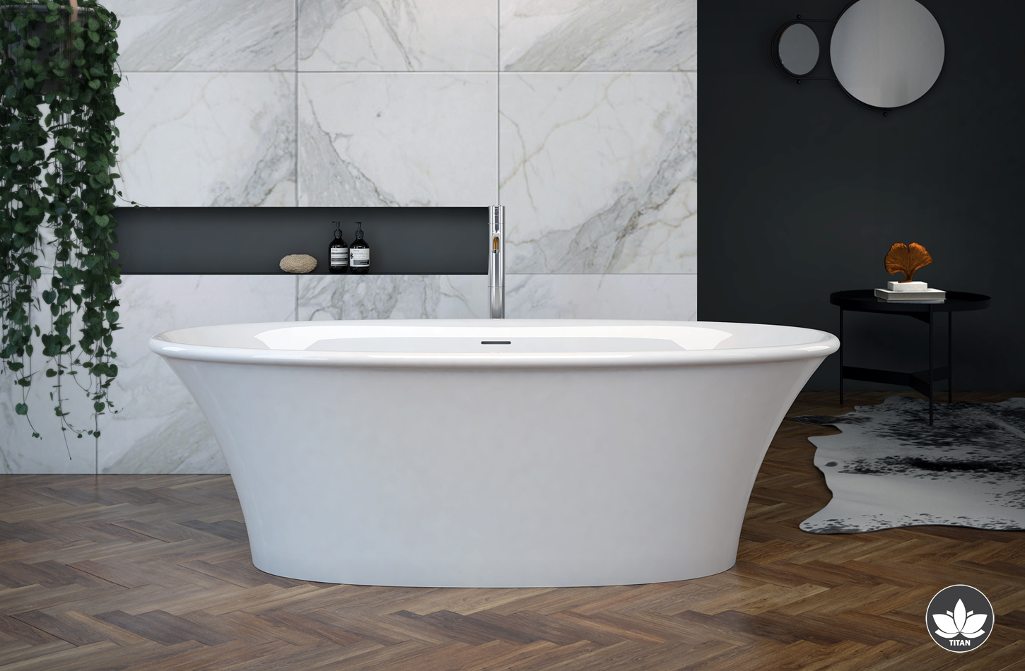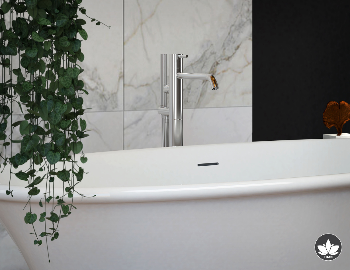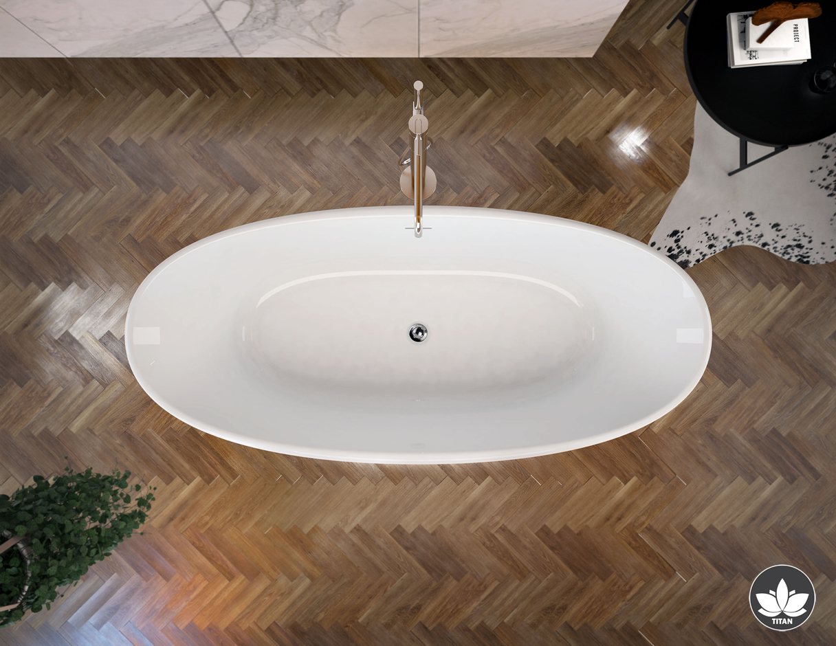 Elegantna samostojeća kada Titan melodia dostupna je isključivo u izvedbi od lijevanog mramora u bijeloj boji.