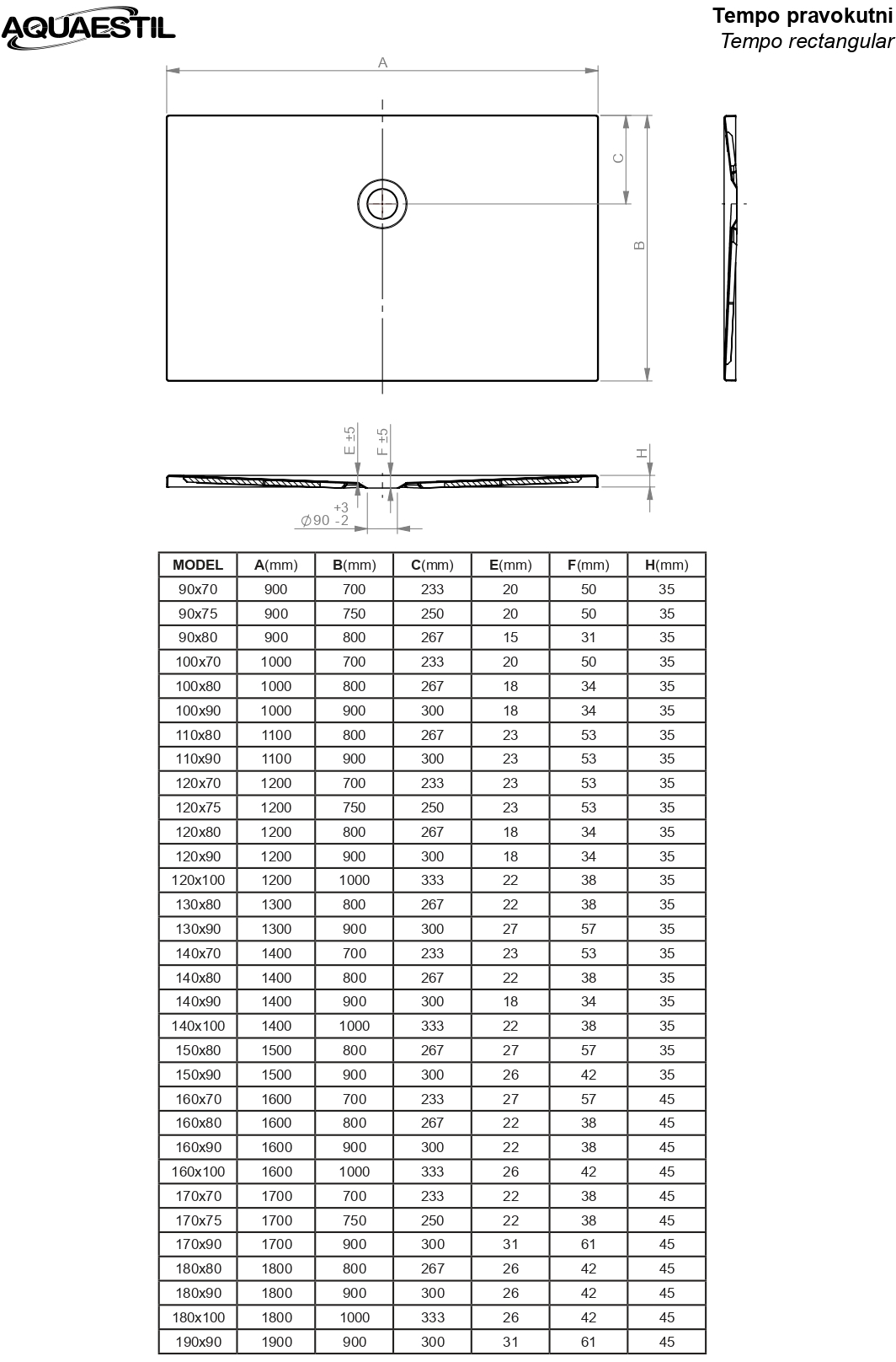 Tuš kada Tempo dostupna je u puno različitih dimenzija, a namijenjena je ugradnji u razinu poda zbog svojeg niskog profila. Ova tuš kada idealna je za stvaranje prostora za tuširanje bez barijera u kombinaciji s našim staklenim paravanima.