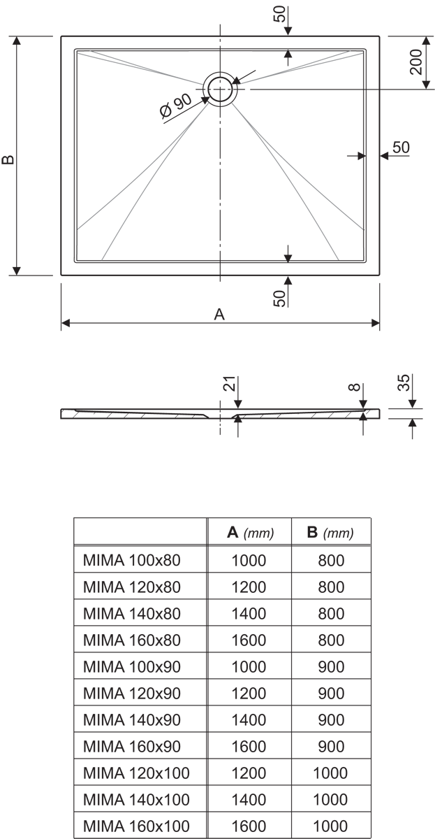 Mima je tuš kada od lijevanog mramora namijenjena prvenstveno ugradnji u razinu poda. Prepoznatljiva je po jednostavnim linijama i klasičnom izvedbom sifona. Tuš kade od lijevanog mramora odlikuju se maksimalnom čvrstoćom i savršenim linijama koje je moguće izvesti zahvaljujući naprednim svojstvima ovog materijala. Površina ovih tuš kada je sjajna i vrlo jednostavna za svakodnevno čišćenje i održavanje.