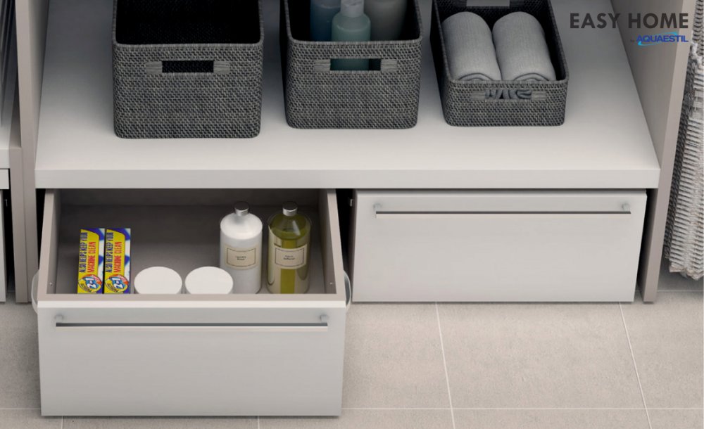 Gli armadietti mobili EASY HOME di alta qualità completano i piani di lavoro e i mobili base per asciugatrici/lavatrici e conferiscono loro funzionalità aggiuntive.