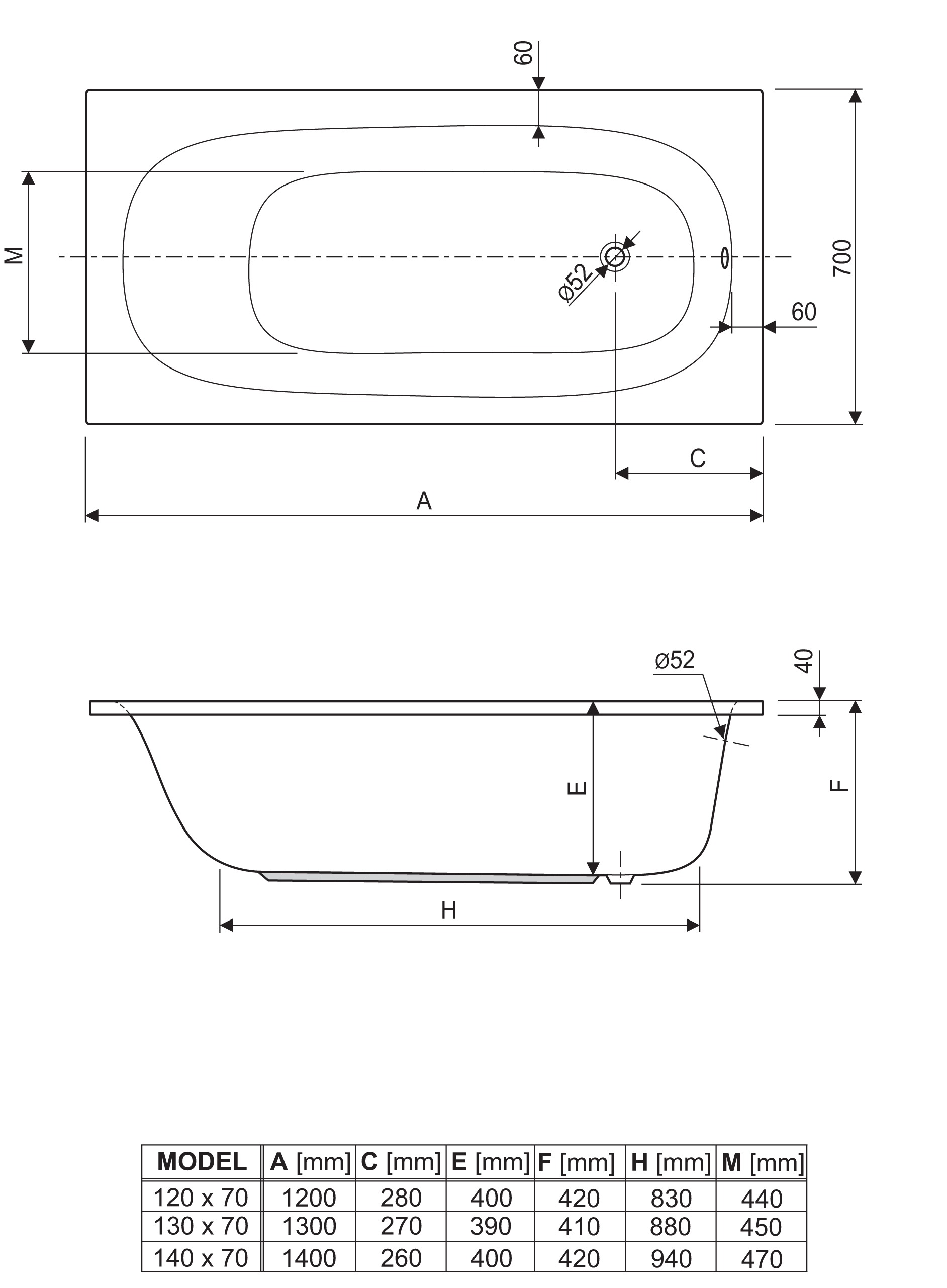 - 140 x 70 cm vol.140 ltr